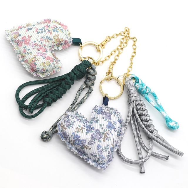 ~kakera パラコードバッグチャーム 【リバティ×ミナペルホネン コレクション】~ ・パラコードとハートのオーナメントを組み合わせたバッグチャームです。 ・使用している布はリバティとミナペルホネンのコラボ柄を使用しています。柄は以下の通りです。 A 【Forest Wave フォレスト・ウェーブ】 B、C 【Unforgettable Moment アンフォーゲッタブル・モーメント】 ・他のチャームやお手持ちのキーリング、カラビナなども組み合わせてボリューミーなバッグチャームにして楽しむことができます。 ~【kakera】シリーズについて~ 【kakera】シリーズとはborsaioで使用している在庫品(新品未使用)をアップサイクルし作品に仕上げているものですので、使用している素材、金具など、それぞれ異なる場合があります。 あらかじめご了承の上ご購入ください。 ~商品詳細~ ・サイズ 14~16cm(2重カン上からパラコードの裾まで)※パラコードの端糸処理によって長さが異なります。 ・金メッキ加工の金具を使用。 ・素材 綿、アクリル ※ 金属アレルギーのある方は事前によくご確認ください。 ※ 素人採寸ですので、多少の誤差が生じる場合がございます。その他縫い目のゆがみ・ほつれなど生じている場合がございます。何卒ご了承願います。 既製品のような仕上がりをお求めの方のご購入は恐れ入りますがご遠慮いただけますようお願い申し上げます。 ※無料ラッピングを承っておりますが、borsaioでは簡易ラッピングを心がけております。何卒ご了承願います。