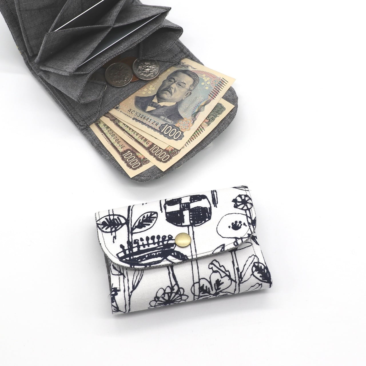 ・お札を折らずに出し入れできて、小銭の出し入れもとってもらくちんなコンパクトミニ財布です。