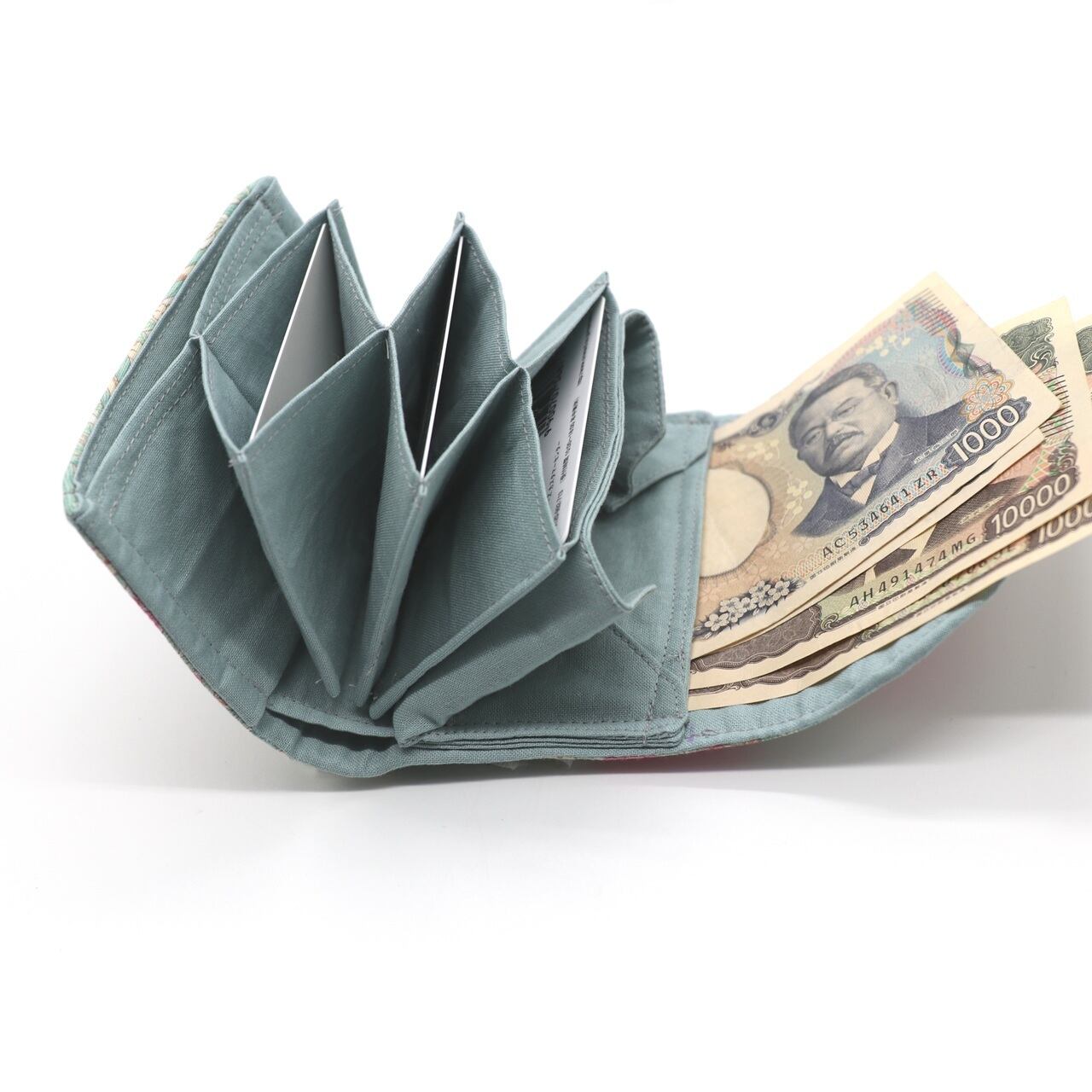 【small wallet 小さな財布】 ギャルソン財布 ウイリアム モリス【ピンパネル(ミント×ピンク)】
