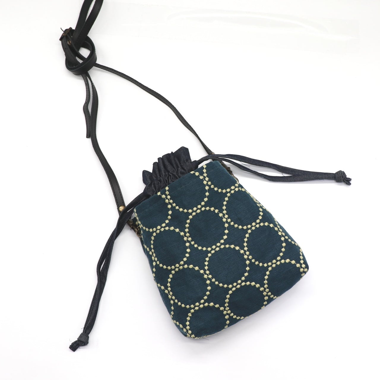 ・土台にデニム生地を使用した、実用性の高い巾着ポシェットです。