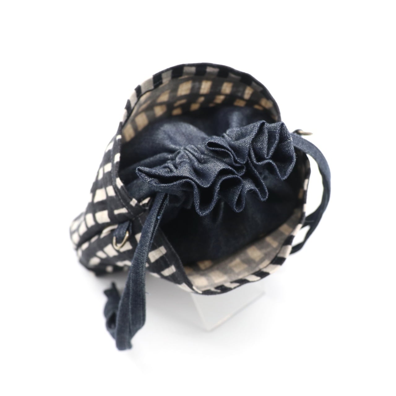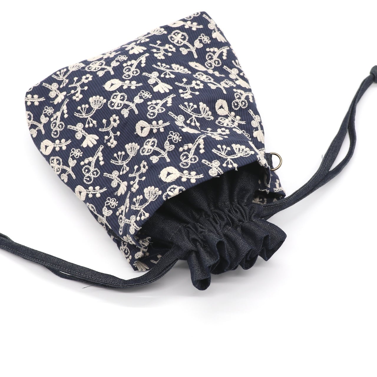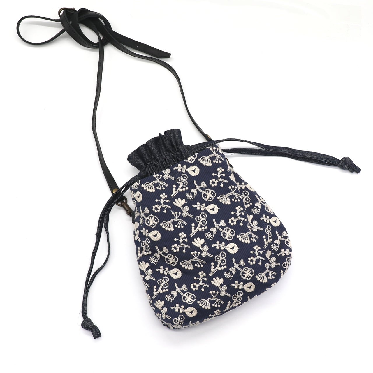 ・土台にデニム生地を使用した、実用性の高い巾着ポシェットです。