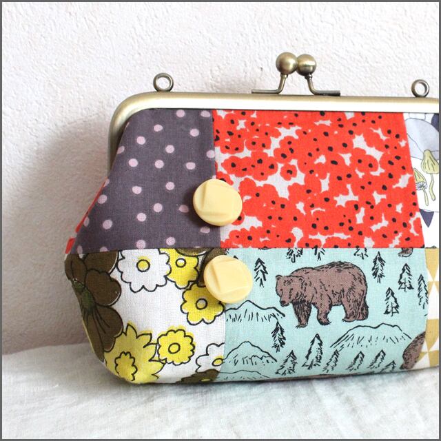 ・6種類のヨーロッパヴィンテージをパッチした大き目がま口です。