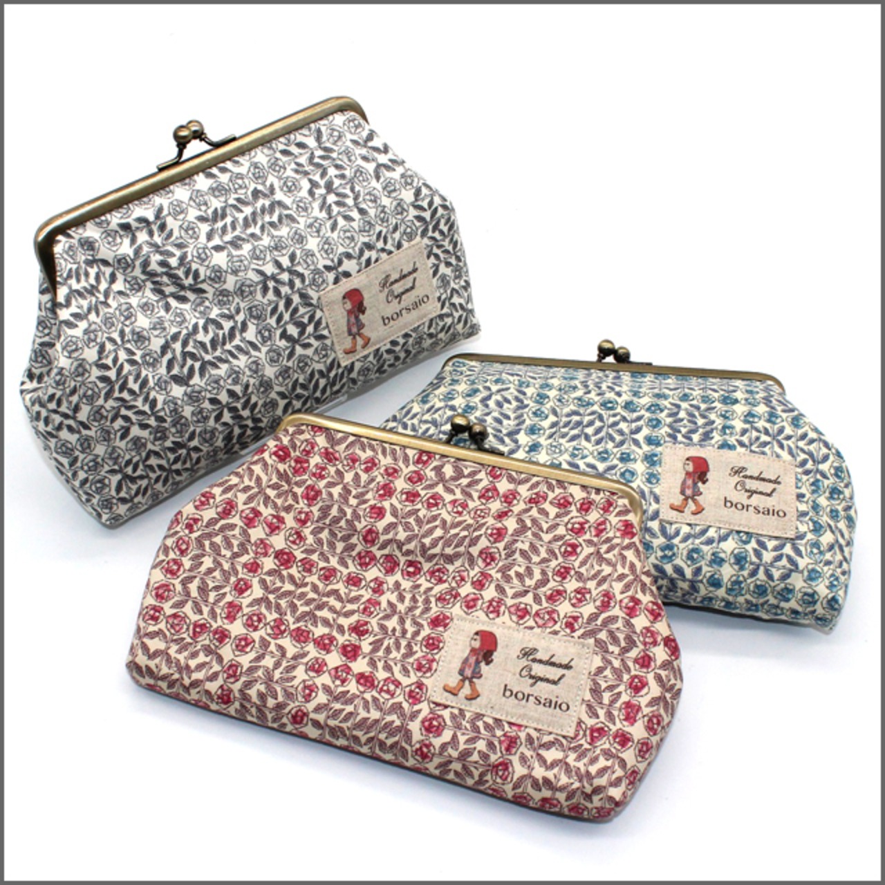 ・15cmの口金を使用したふっくらかわいいがま口ポーチです。