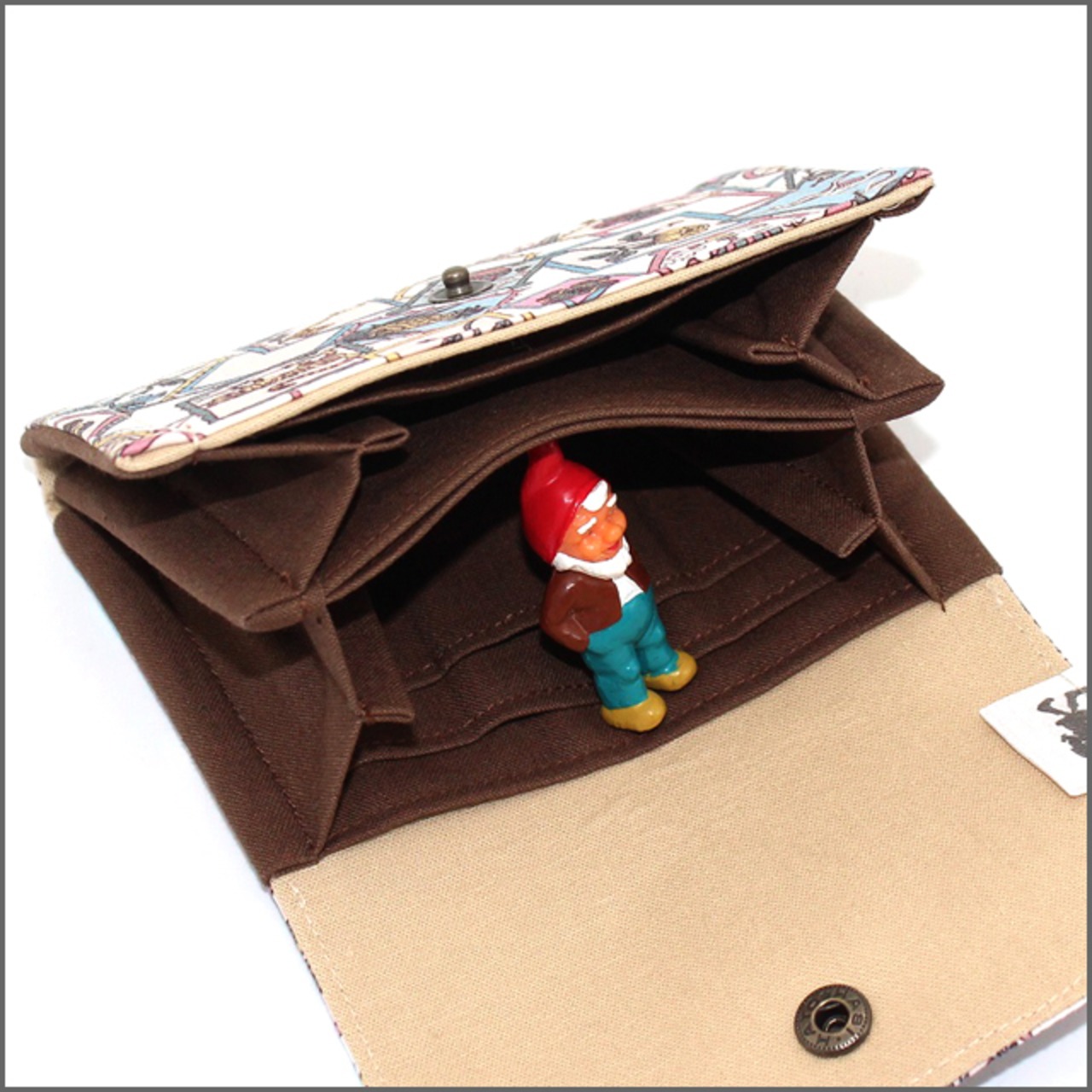 ・ファスナーの無い仕切りには小銭を入れることができ、蓋をすれば振り回しても溢れることはありません。