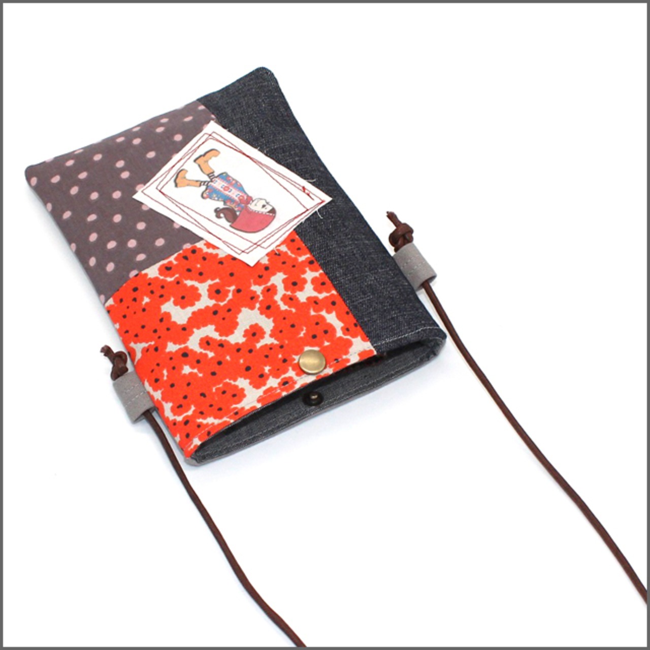 ~09スマホショルダー ヴィンテージファブリック 【オレンジとピンクのドット】~
