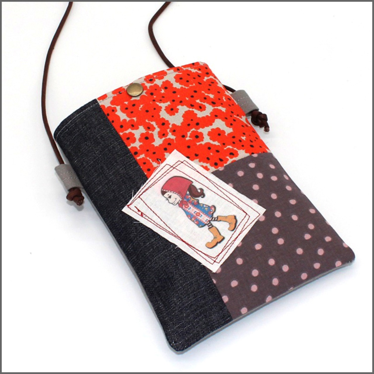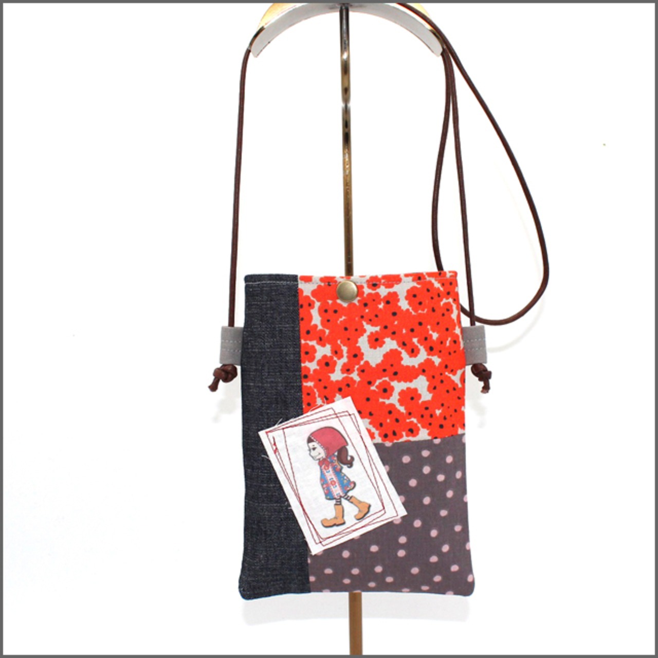 09スマホショルダー ヴィンテージファブリック 【オレンジとピンクのドット】
