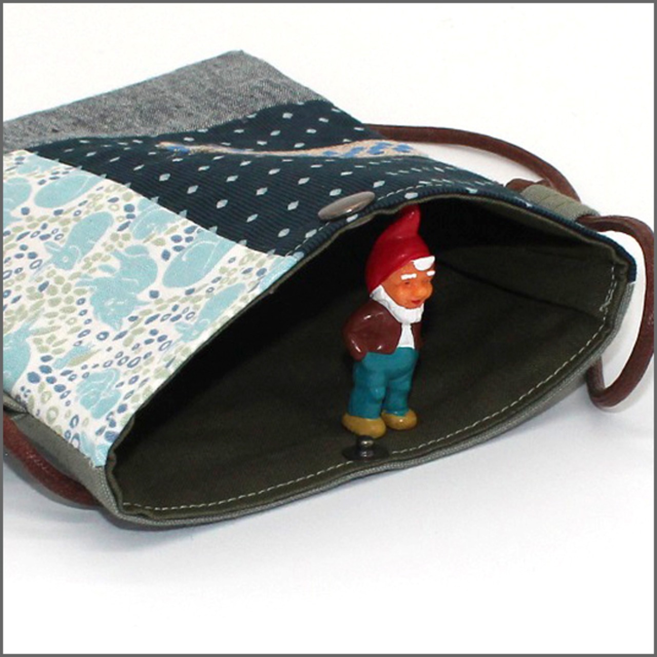 ・ヨーロッパヴィンテージのファブリックやテープ、ボタンなど色々な布をパッチワークしています(布部分は現行品含む)。