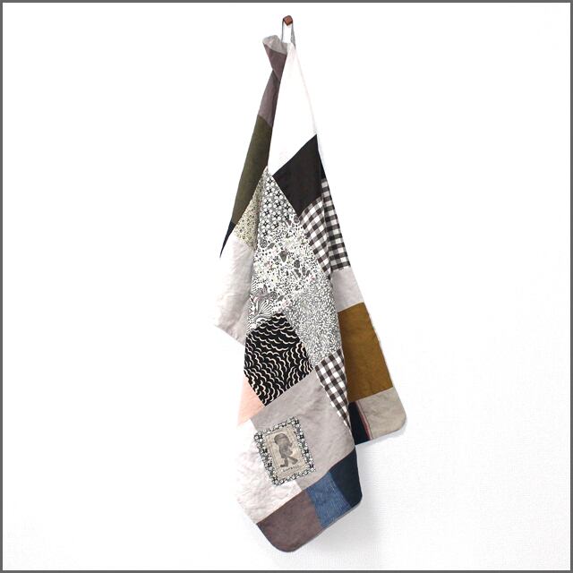 ・真ん中に8柄のリバティプリント、周囲には様々なリネンやコットンをパッチワークした、ひざ掛けサイズのブランケットです。