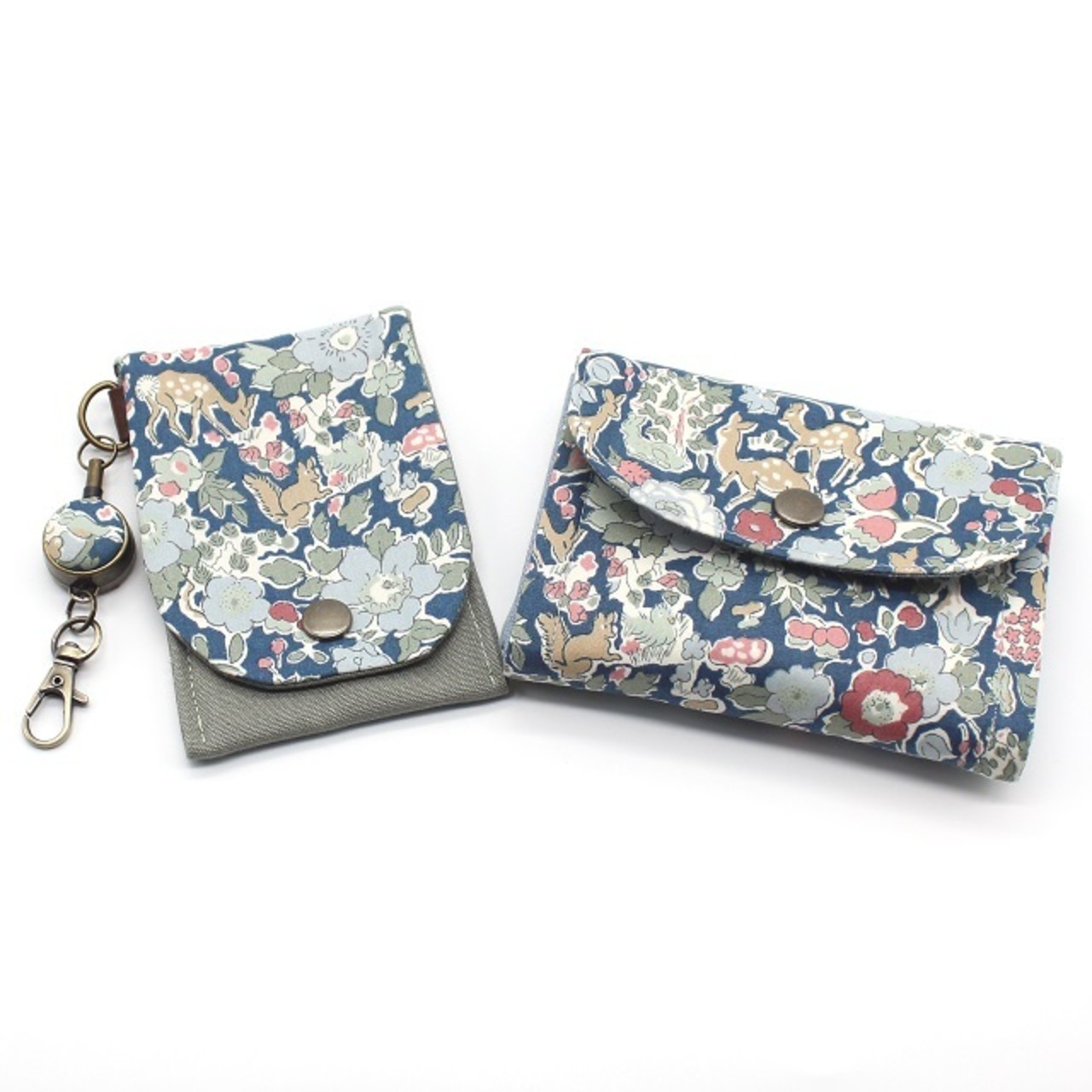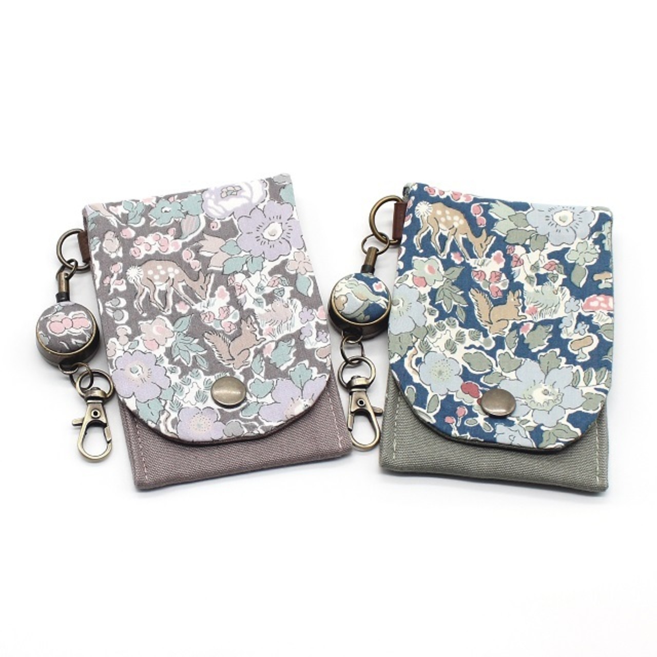 LIBERTY リバティプリントICカードケース&リールセット【Woodland Betsy ウッドランド・ベッツィ(ブルー)】