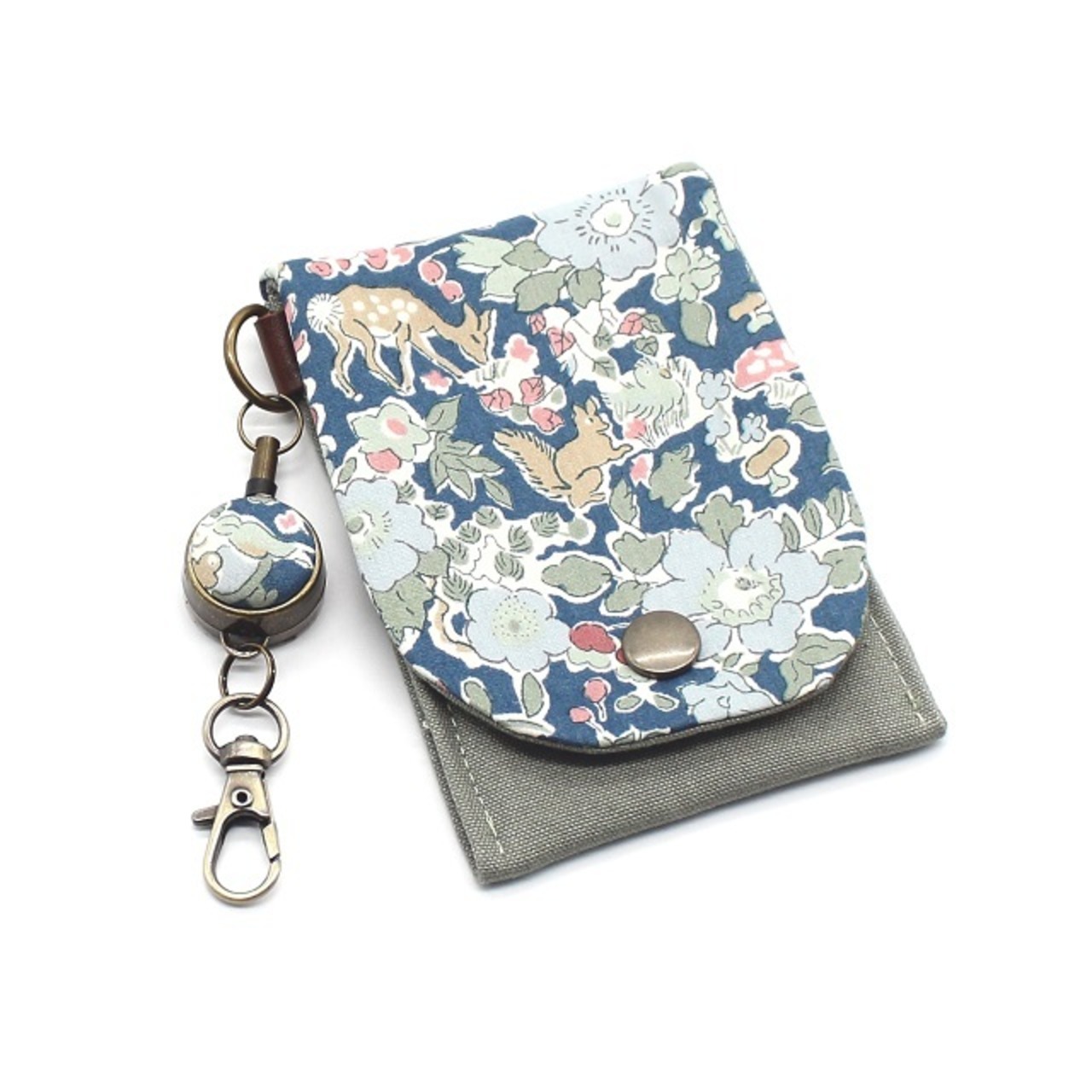 ~LIBERTY リバティプリントICカードケース&リールセット【Woodland Betsy ウッドランド・ベッツィ(ブルー)】~