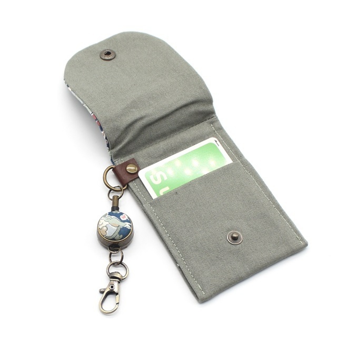 ・スナップボタンで開閉し、カードは入れたまま使用できます。