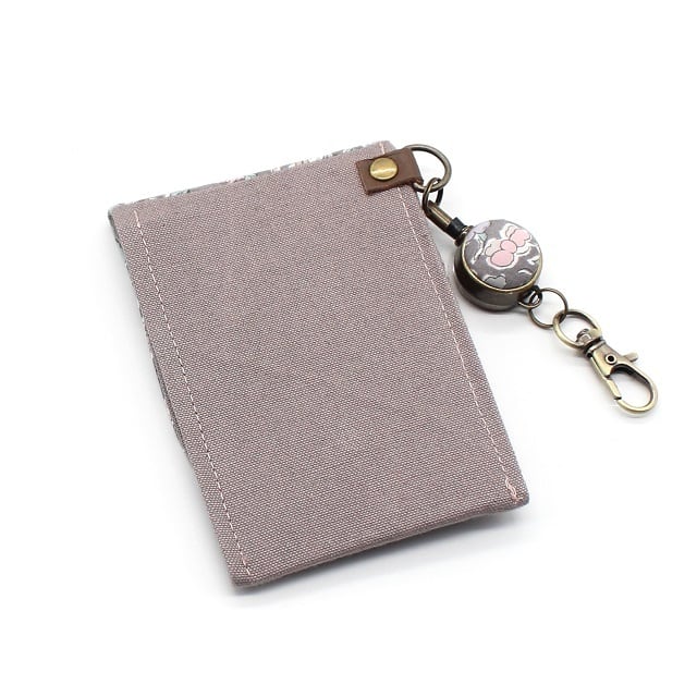 ~LIBERTY リバティプリントICカードケース&リールセット【Woodland Betsy ウッドランド・ベッツィ(グレーピンク)】~