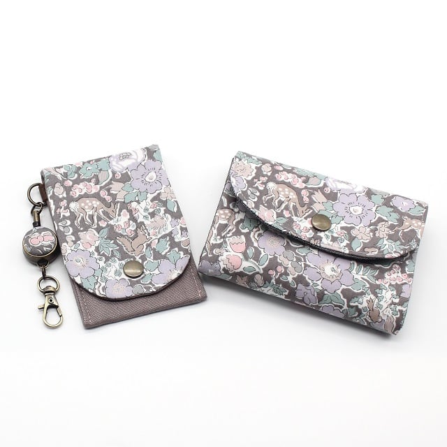 LIBERTY リバティプリントICカードケース&リールセット【Woodland Betsy ウッドランド・ベッツィ(グレーピンク)】