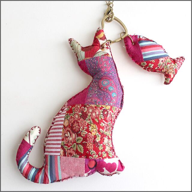 LIBERTY大き目バッグチャームCat(猫)赤系