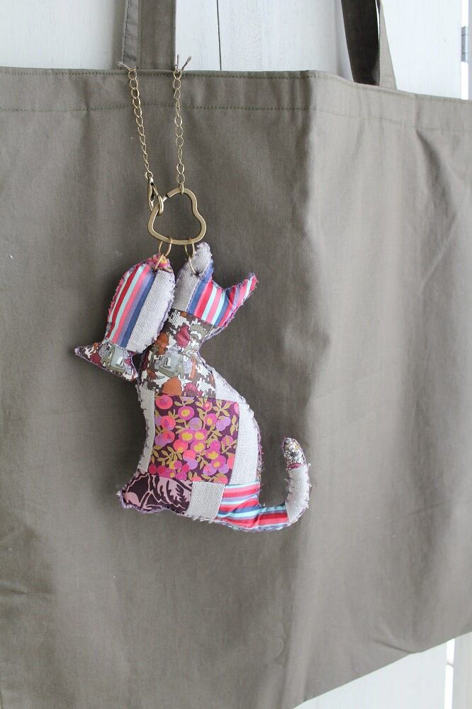LIBERTY大き目バッグチャーム Cat(猫)ベージュ×パープル系