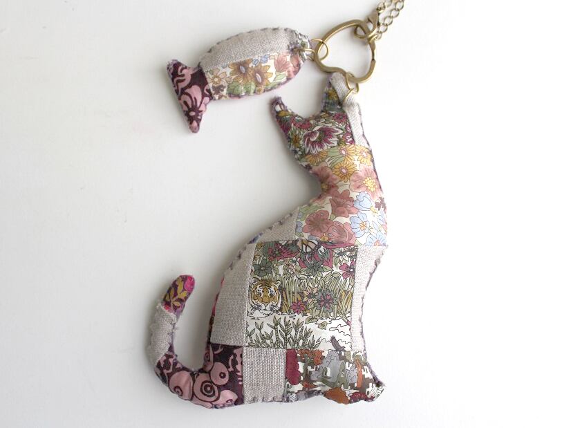 ・ねこと魚のチャームは綿・リネン。