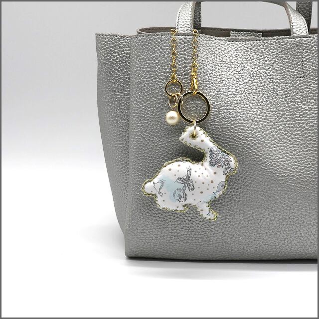 ~13 ミナペルホネン×リバティ Lapin(うさぎ)バッグチャーム【Sleeping Rose スリーピング・ローズ×Memories of Rain メモリーズ・オブ・レイン】~