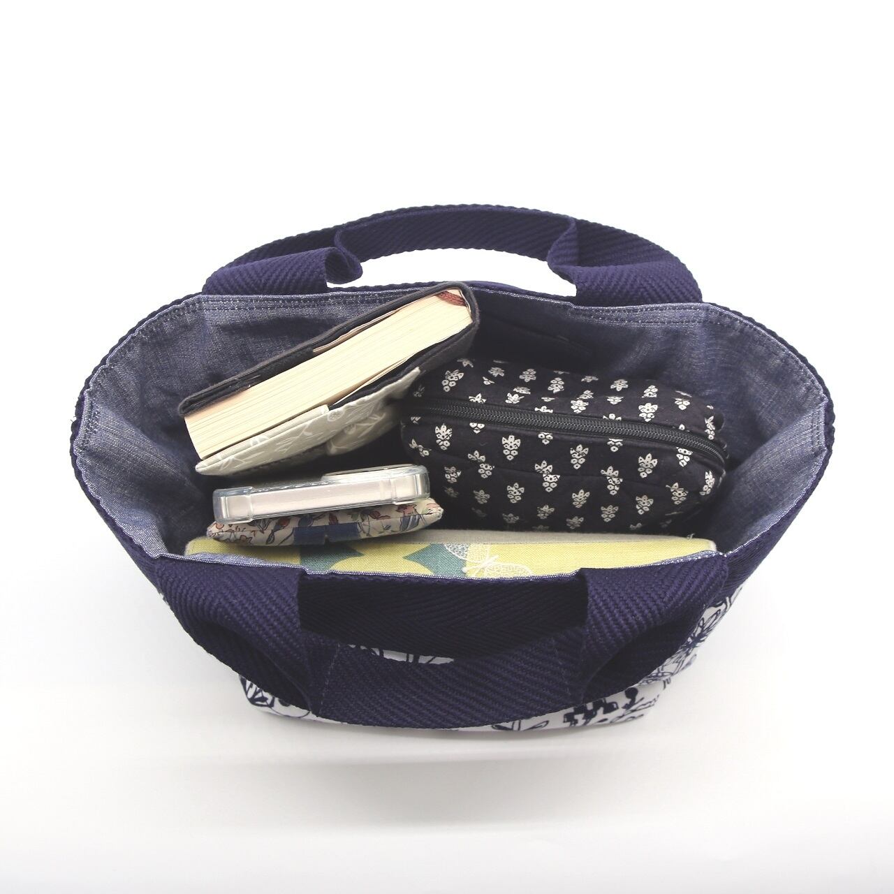 ・内側と底には薄地のデニム地を使用しています。※すべてのお散歩トートバッグは内側、底面に同じデニム地を使用しています。(画像4、5枚目を参照)