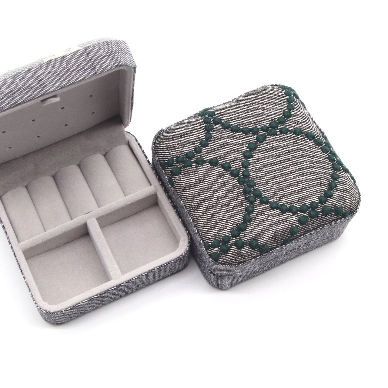 ・ジュエリーボックスの背面は、あえて布と布が接地しないよう離して接着しています。話すことで開いたときに内側の蝶番がずれてしまうこと防ぐためです。何卒ご理解いただきますようお願いいたします。