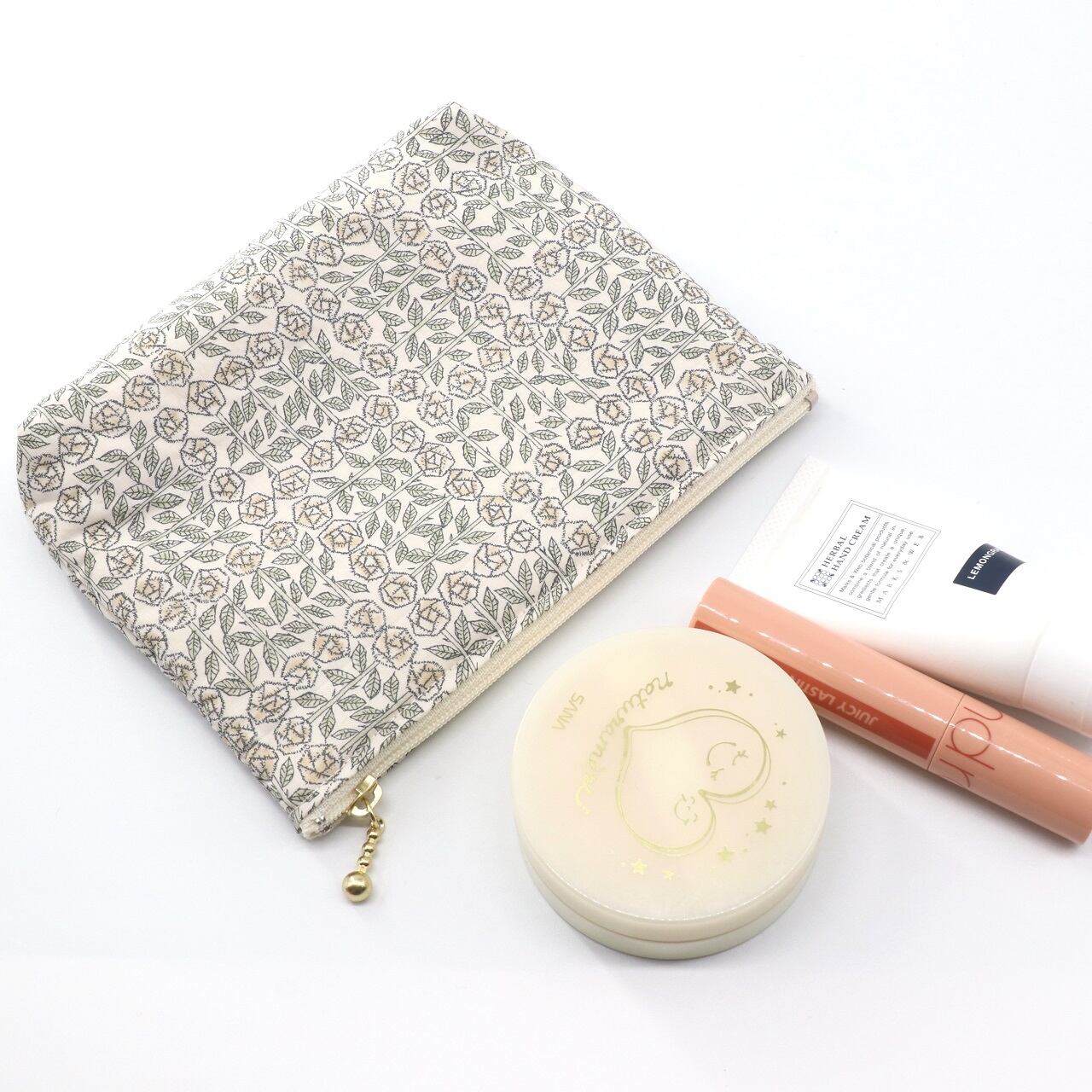 16 16cmファスナーポーチ リバティ 【Sleeping rose スリーピングローズ(ベージュ)】