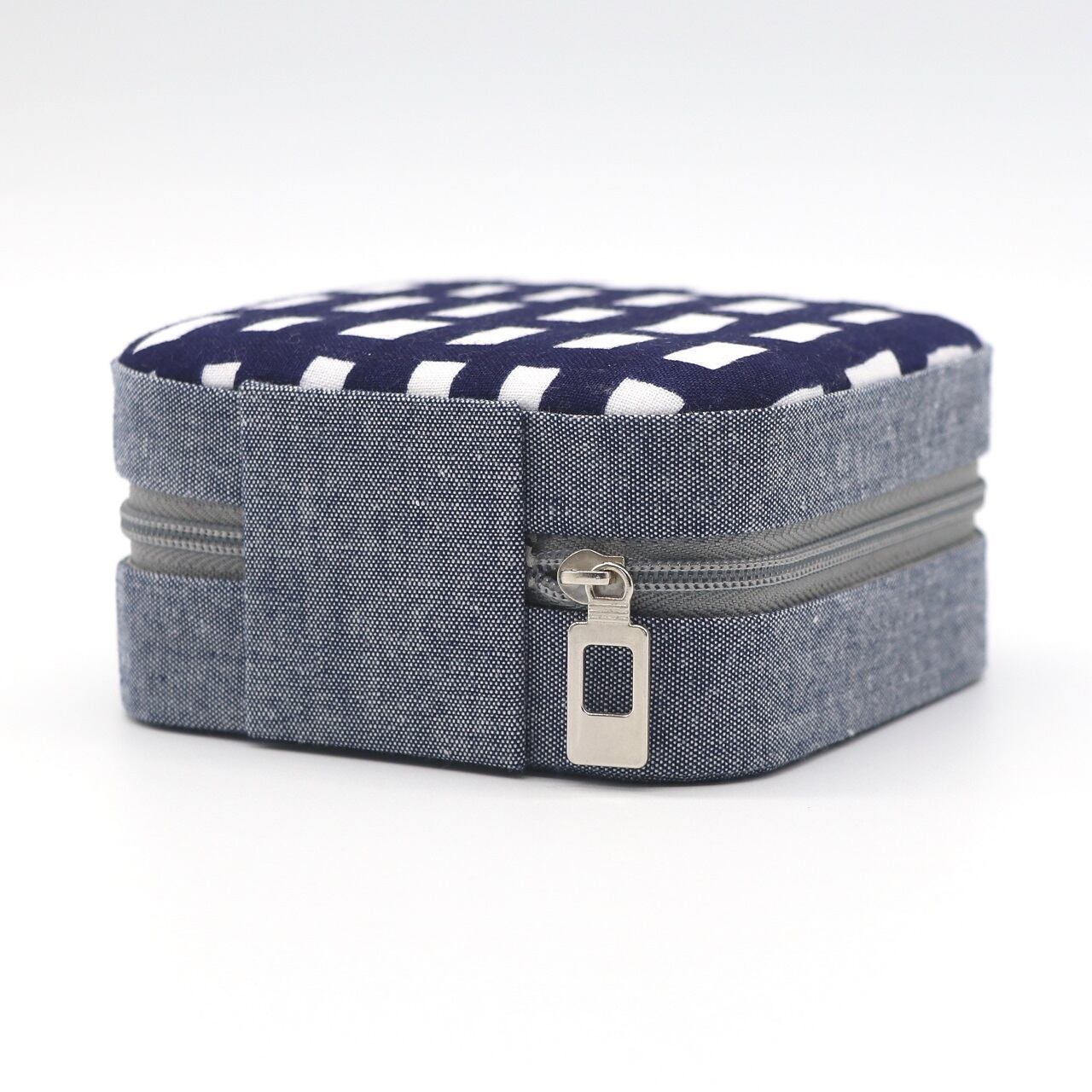 送料無料 受注製作 ファスナータイプジュエリーボックス ミナペルホネン mina perhonen【sora check(ネイビー)】