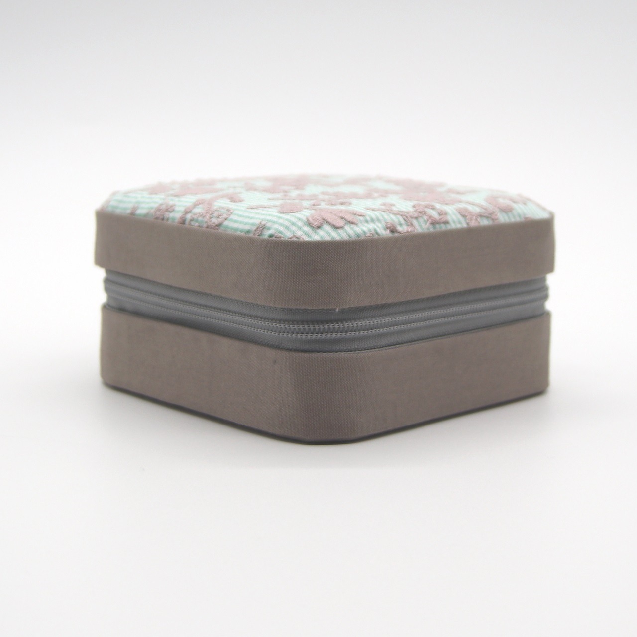 送料無料 受注製作 ファスナータイプジュエリーボックス check&stripe【field of flower(チェックミント)】