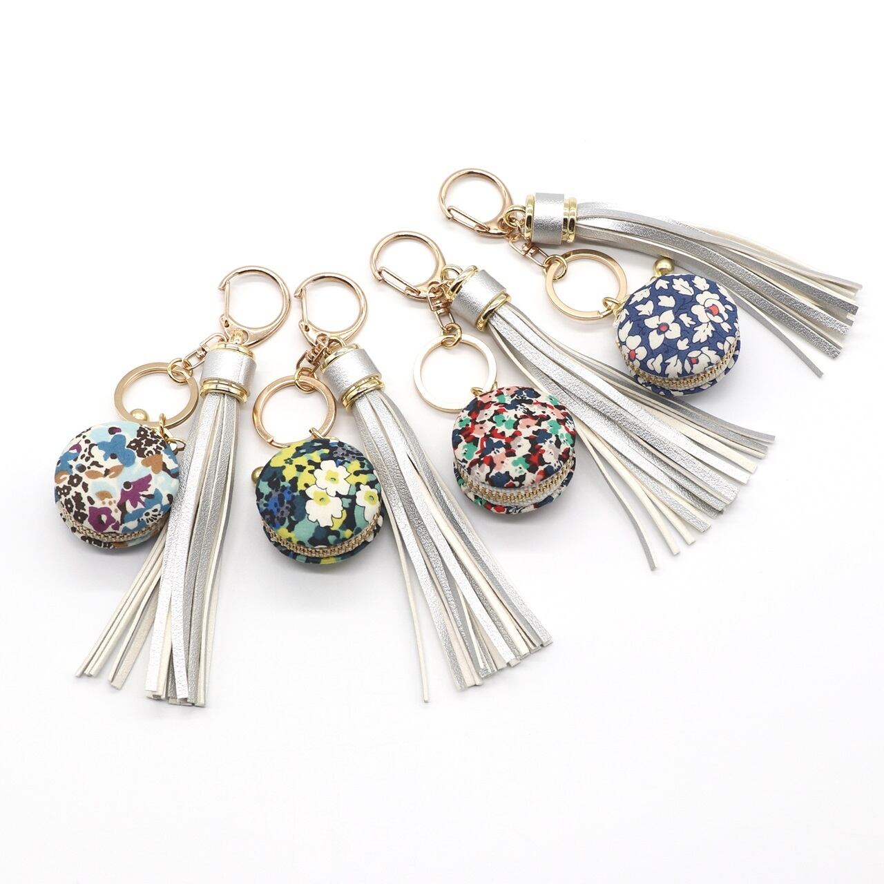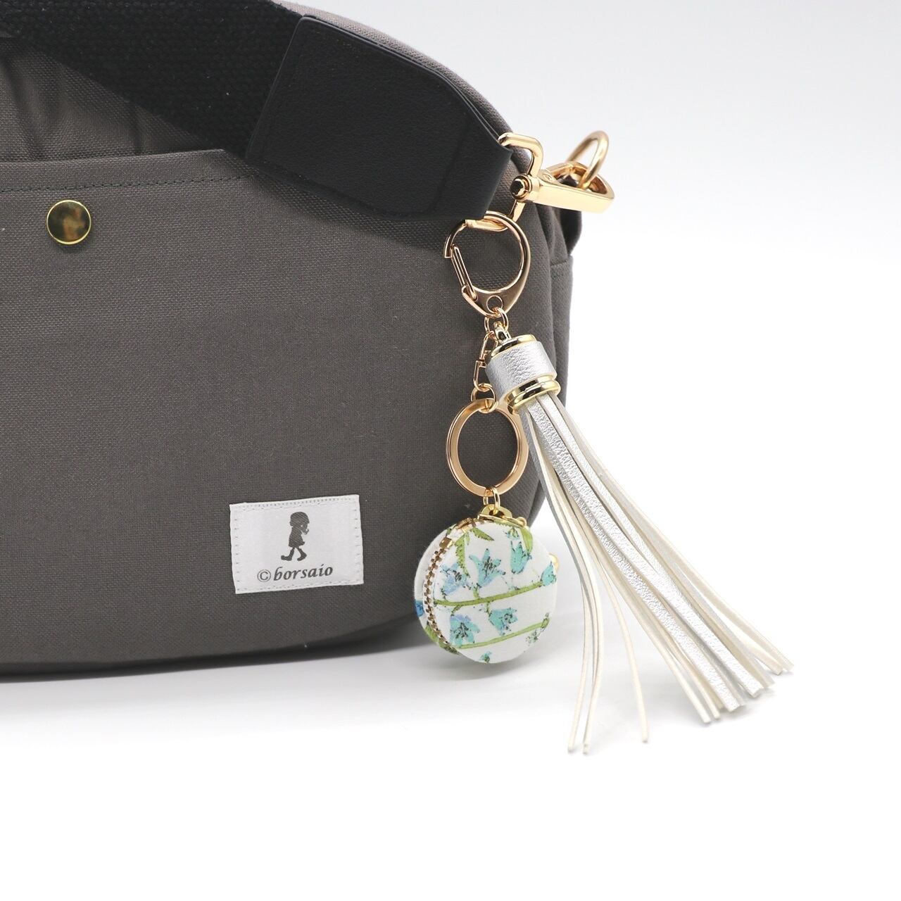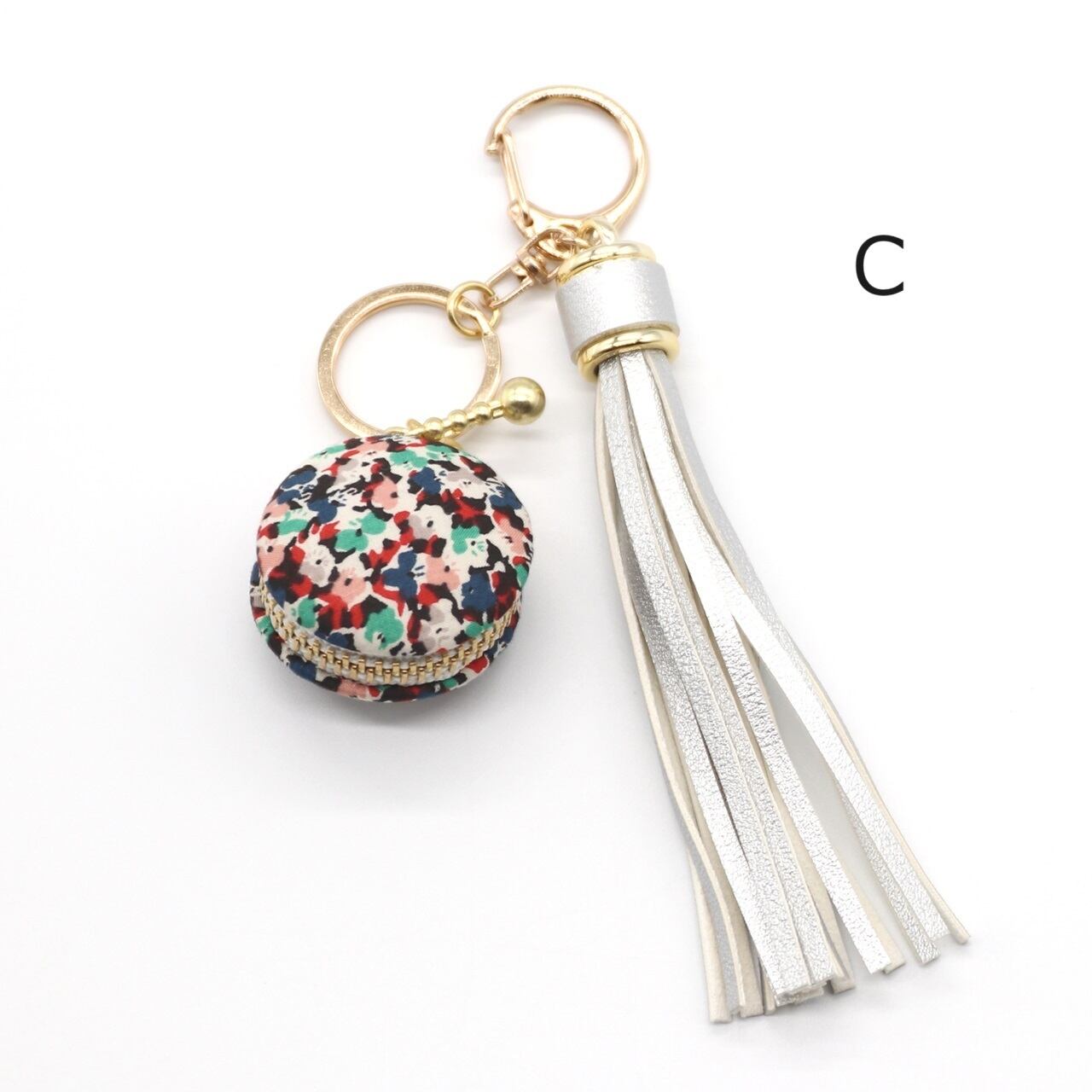 ・リバティプリントで作った小さなマカロンケースとタッセル(合皮)を合わせた、シックで可愛いキーホルダーです。